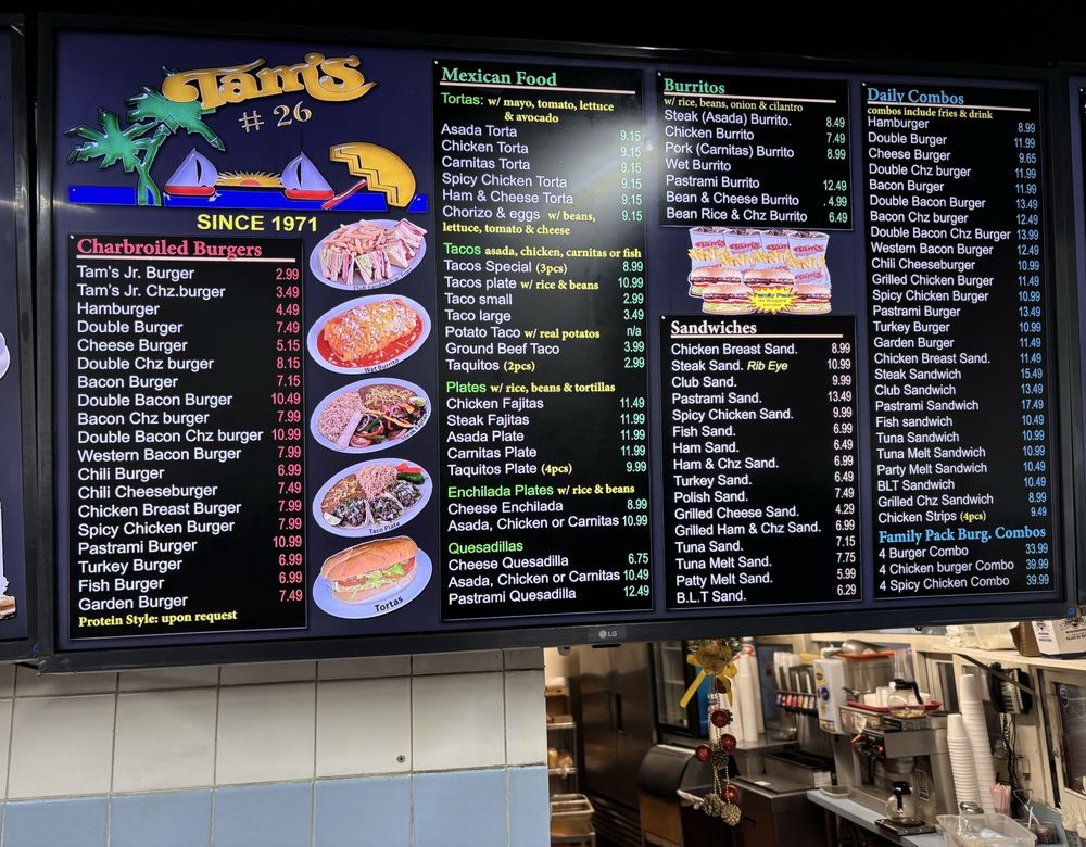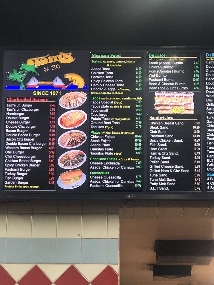Introducing Tam's Burgers No 26, a vibrant gem located at 3216 W Beverly Blvd, Montebello, CA. Specializing in Mexican-style burgers, this unclaimed eatery offers a remarkable array of dishes perfect for breakfast, brunch, lunch, and even late-night cravings. The atmosphere is casual and relaxed, making it ideal for families and groups, and with conveniences like delivery, catering, and a welcoming outdoor seating area, you can't go wrong.