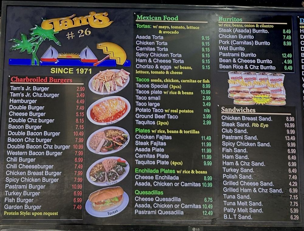 Patrons rave about the bacon breakfast burrito and the Wet Burrito drizzled in green sauce, accentuating the authentic Mexican flavors that remind many of home. Options abound, including many vegetarian choices, ensuring there’s something for everyone. With excellent service and a clean environment, it's no wonder customers leave with smiles and satisfied appetites. Whether dining in or taking out, Tam's Burgers No 26 is a must-visit for anyone looking to indulge in delicious, flavorful meals.
